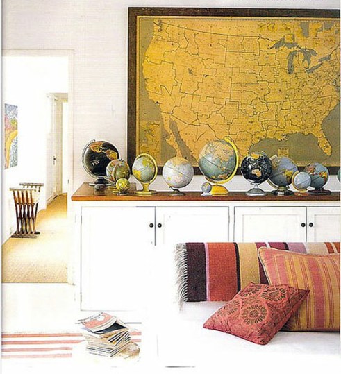 I’m a big fan of incorporating maps and globes into your space. I thought I’d share some of my favorite examples I’ve collected from around the web.