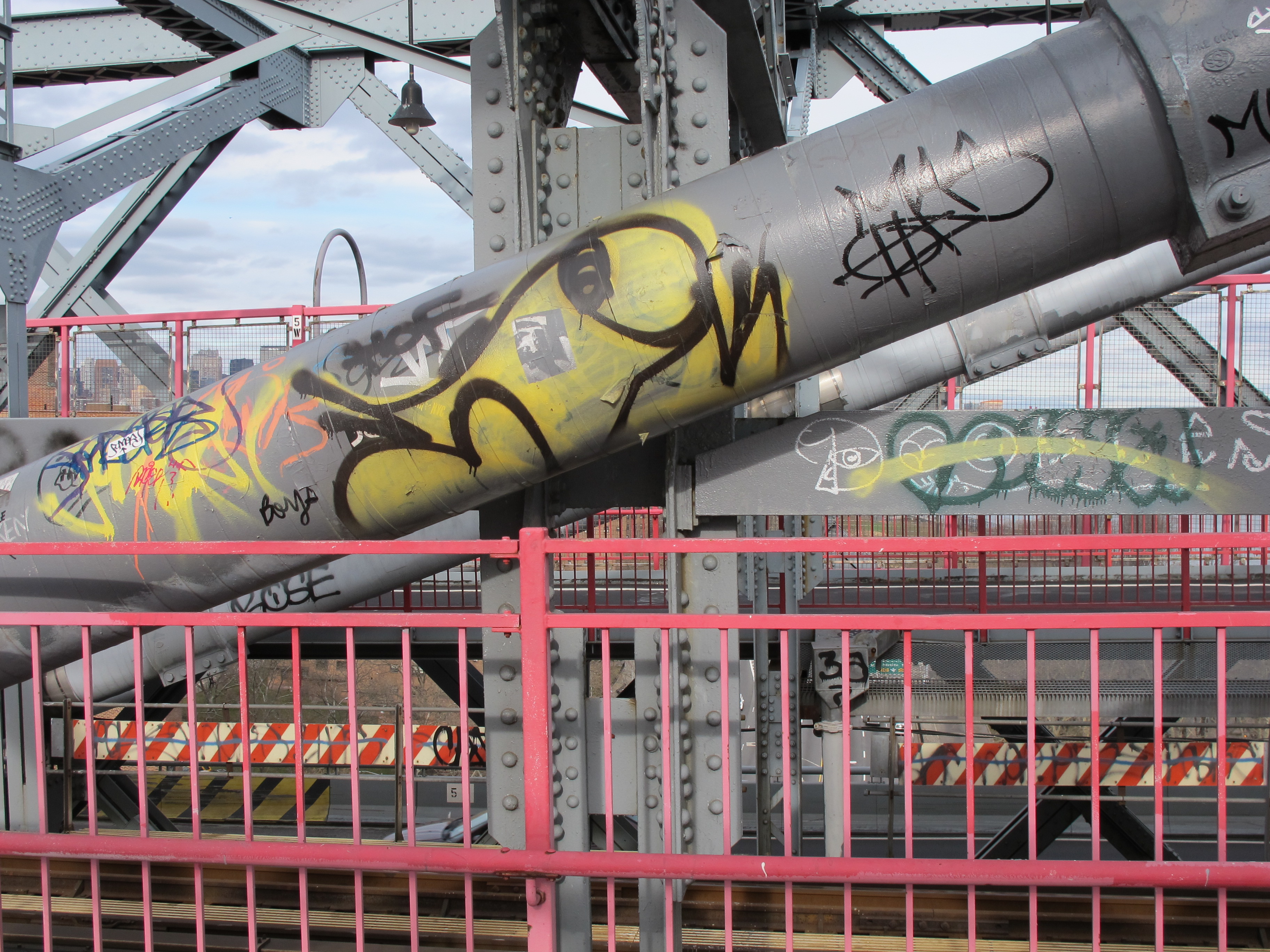 I love walking over the Williamsburg Bridge. To give you an idea of where it is, the Williamsburg Bridge connects Manhattan’s Lower East Side to Williamsburg, Brooklyn (and is the bridge that directly connects Lauren and me). New York City has tons of bridges, yet this bridge in particular is popping with graffiti and street art. The walkway is bursting with colors! Every time I walk it, I feel inspired and grateful to be living here.