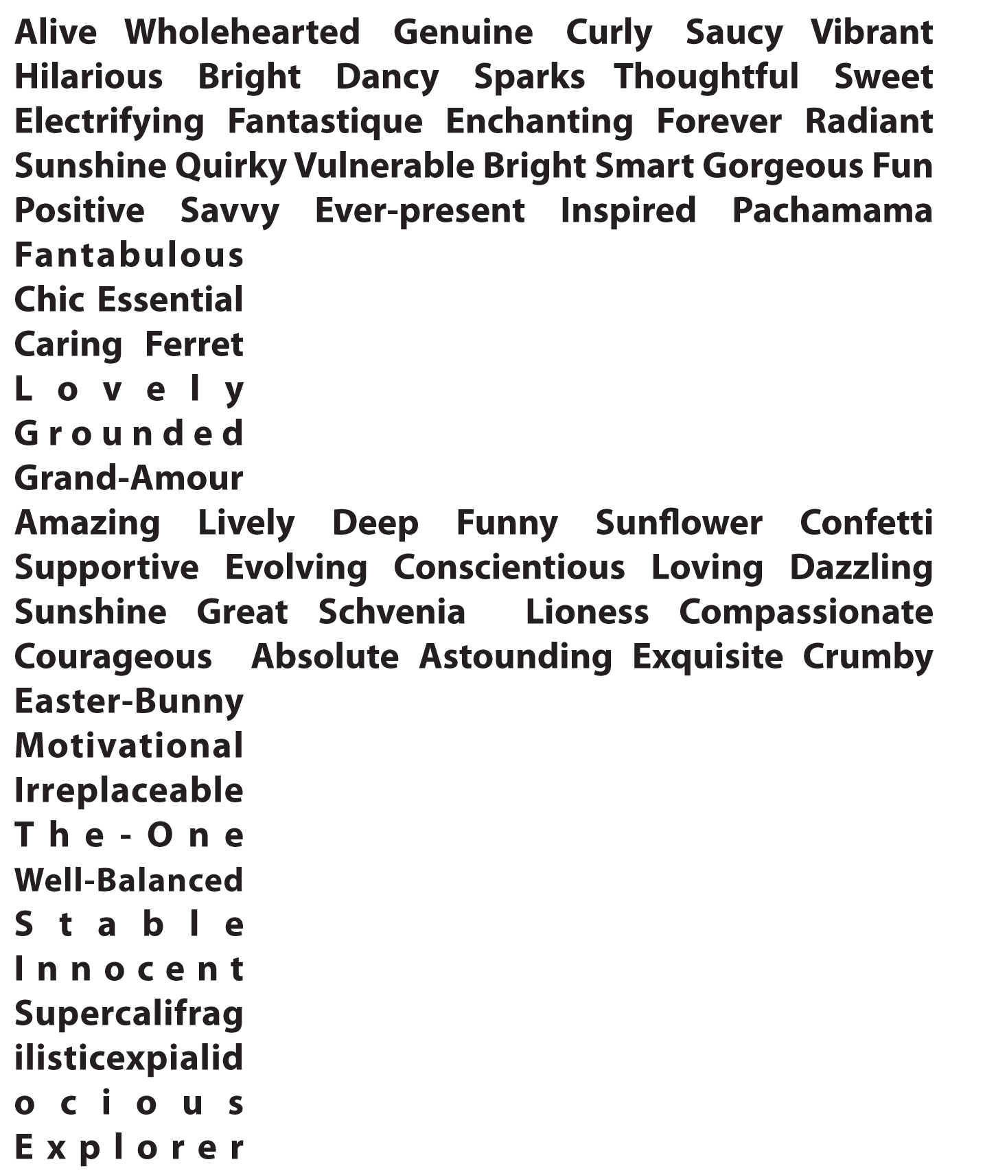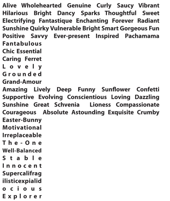*Thank you to everyone who helped out with this, especially to Teddy for the word layout. And no need to stop here. If you have a word you’d like to add, there’s plenty of room to do so in the comments.