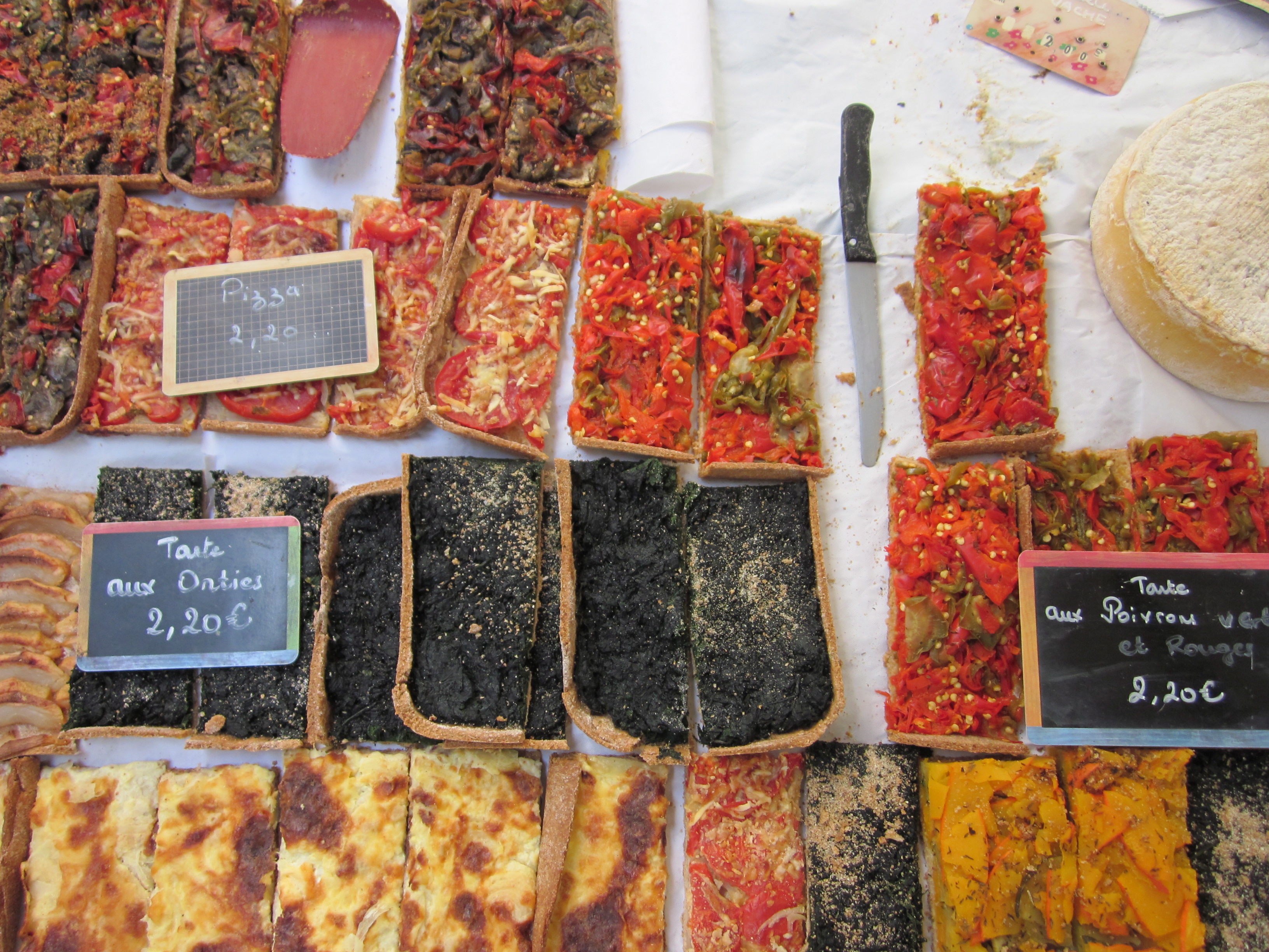 Delicious creations at an early morning farmers market in Paris.