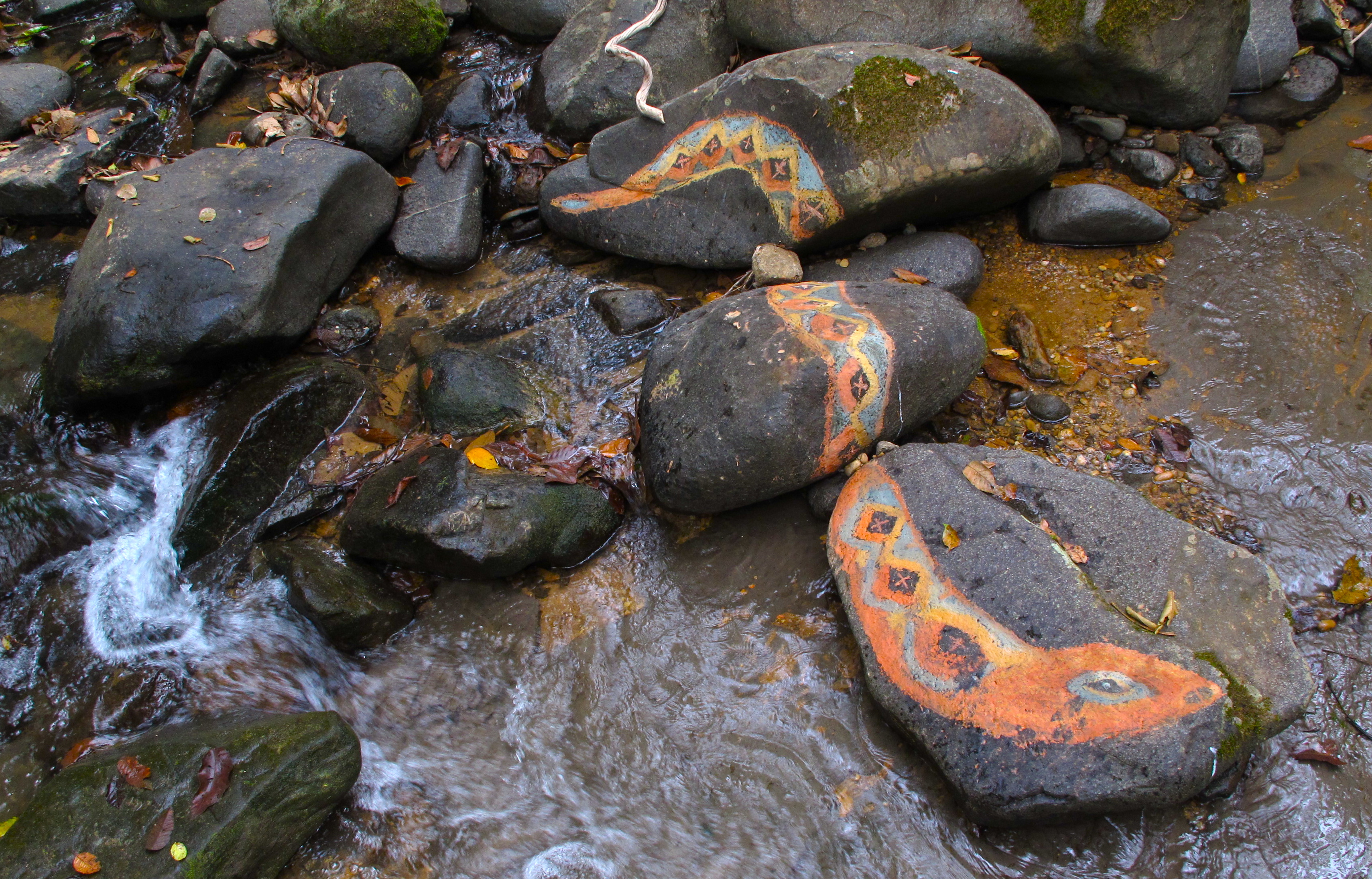In Costa Rica playing with colorful clay rocks I found in the river.