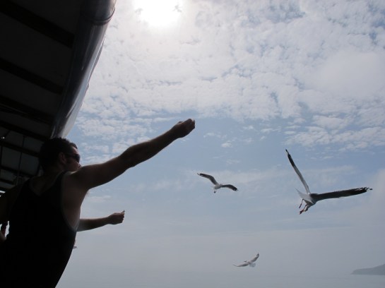 We saw some dolphins, fed some birds, swam with fish.