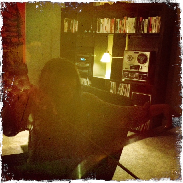 Alison playing a musical saw.