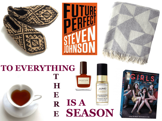 Earlier this week I went to the funeral of a woman I knew through work. At the service they read the Bible passage There is a time for everything. It’s a pretty familiar passage I’ve heard many times in my life but it really struck me this time around. With the onset of the holiday season, I have the feeling that the next couple of weeks are going to fly by. I have lots of upcoming plans to reconnect and celebrate with many of you and it’s going to be great. But in the time I have carved out for myself, I’m looking forward to relaxing and sitting with the things & feelings that don’t always receive their due time.