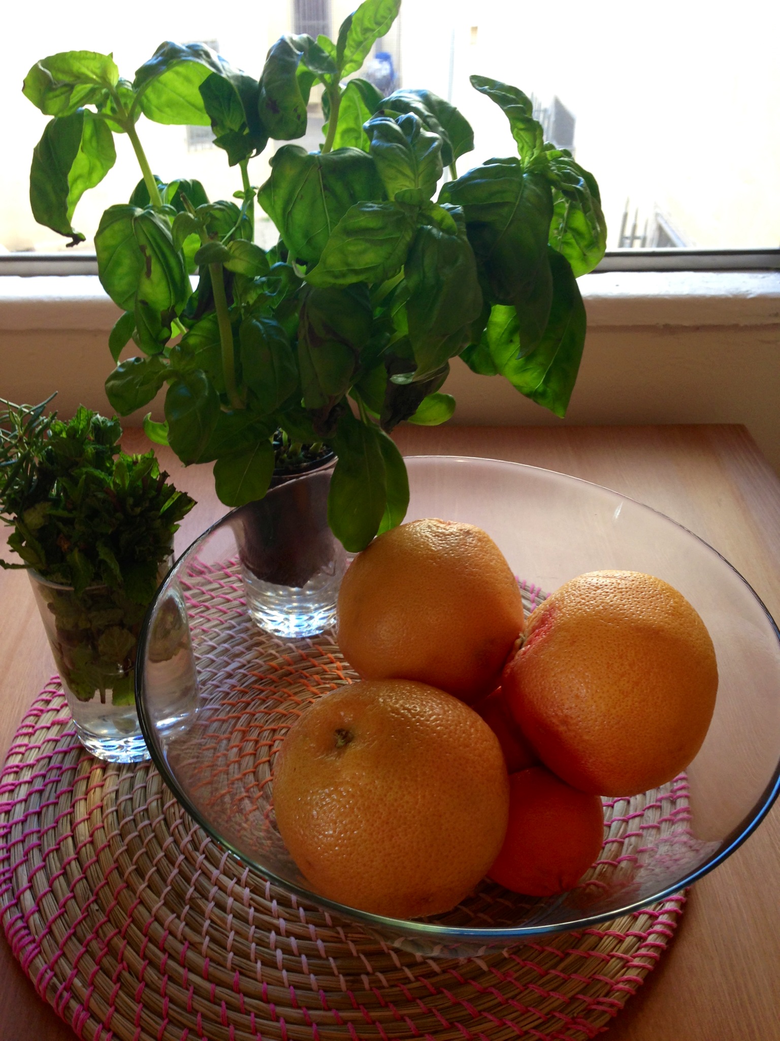 I have clementines, apples, basil and mint all around the kitchen. Not only are they beautiful to see every day, but they give me constant ideas for what to make next (fresh mint tea!).